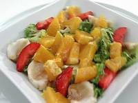 | Салат из морского ангела с необычной заправкой.Состав:морской ангел — 100 гр;апельсин — 1 штука;клубника — 1 штука;несколько листьев салата;бальзамический уксус, оливковое масло, соль — по вкусу.