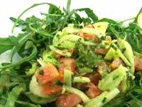 | Низкокалорийный рецепт копченного лосося с фенхелем. 268 калорий.Состав:лосось — 60 гр;фенхель — 100 гр;руккола, лимонный сок, оливковое масло, черный перец, соль, горчица, сахарная пудра.